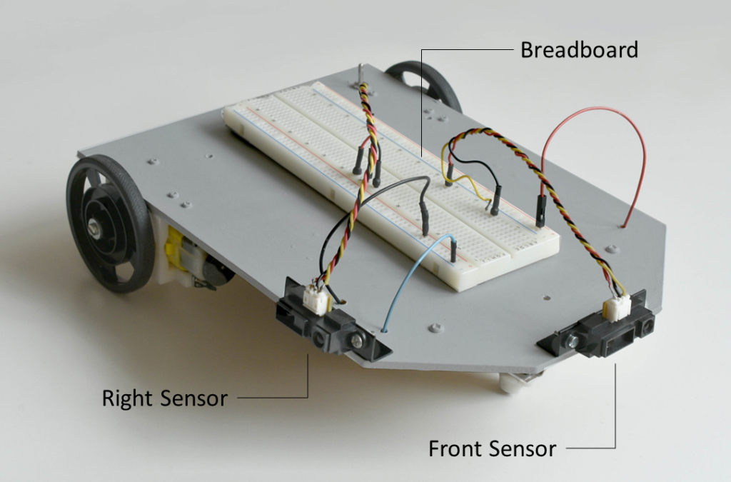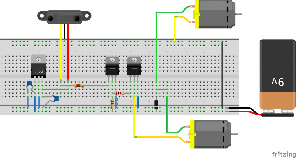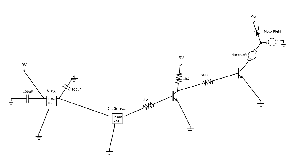 The framework consists of existing and new software that was specially developed to achieve our goals. Fritzing and the Falstad Circuit Simulator are open source software that contribute with breadboard circuit prototyping and circuit simulation, respectively. Adding to these, an interface module was developed that converts Fritzing netlists into the FCS circuit format, thus enabling the simulation of circuits that have been built on the virtual breadboard. Finally, the framework contains a simulation module of a mobile robot interacting with a 2D wall environment. This module, which brings the simulation of sensorimotor behaviour into the framework, is central to extending the use of the software to robotics applications.